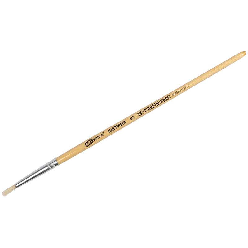 Кисть щетина, круглая. С деревянной ручкой покрытой прозрачным лаком. На каждой ручке штрихкод.