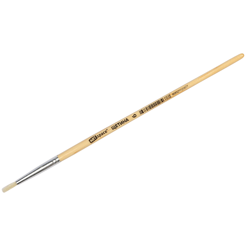 Кисть щетина, круглая. С деревянной ручкой покрытой прозрачным лаком. На каждой ручке штрихкод.