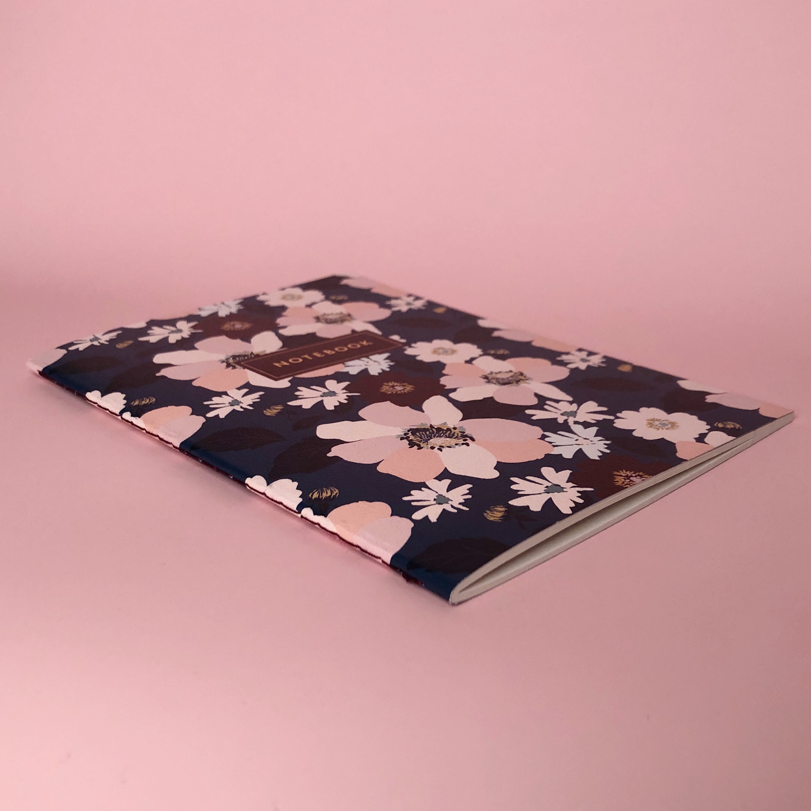 Тетрадь А5 "Dark blue flowers" клетка, 30 л. бумага слоновая кость 90 м/г2, сшивка, золотое тиснение