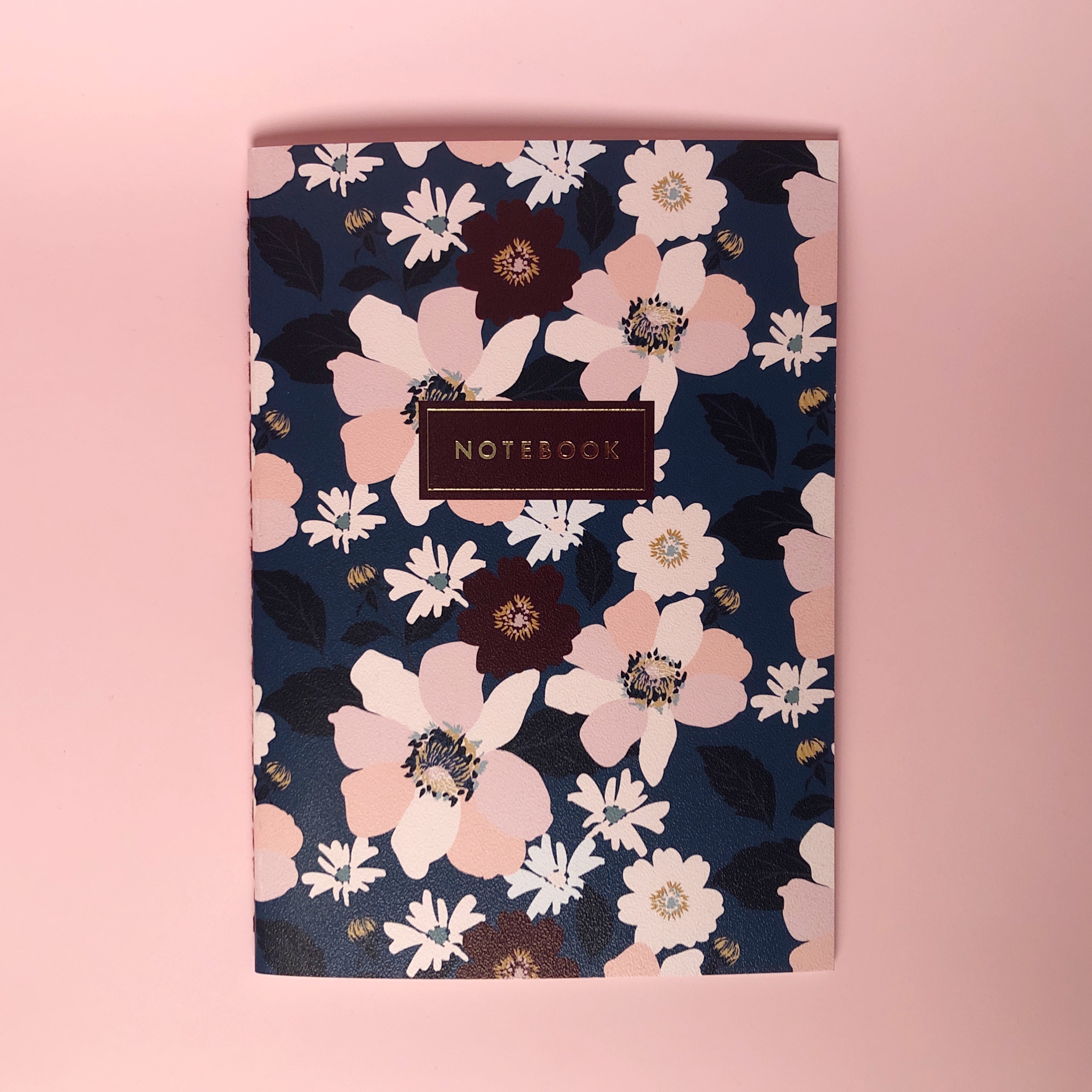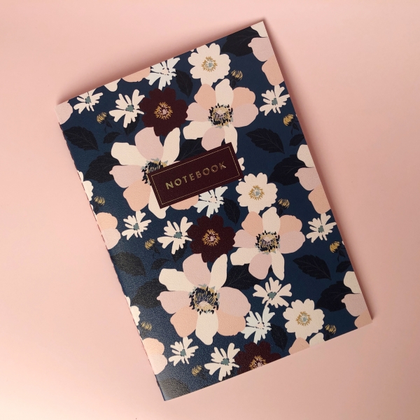 Тетрадь А5 "Dark blue flowers" (точка), 30 л. бумага слоновая кость 90 м/г2, сшивка, золотое тиснени