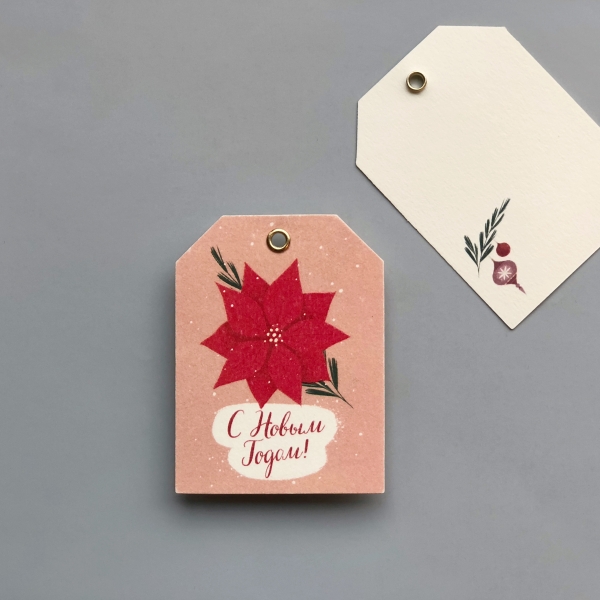 Бирка с веревочкой̆ 6×11,5см, "Рождественская звезда", дизайнерский картон 240 г/м2 sela25