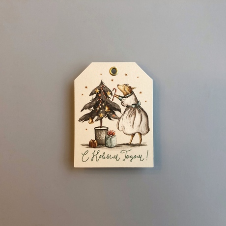 Бирка с веревочкой̆ 6×11,5см, "Собачка и ёлочка"
