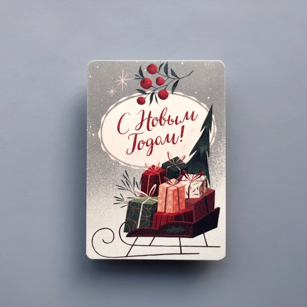 Открытка "Санки с подарками"
