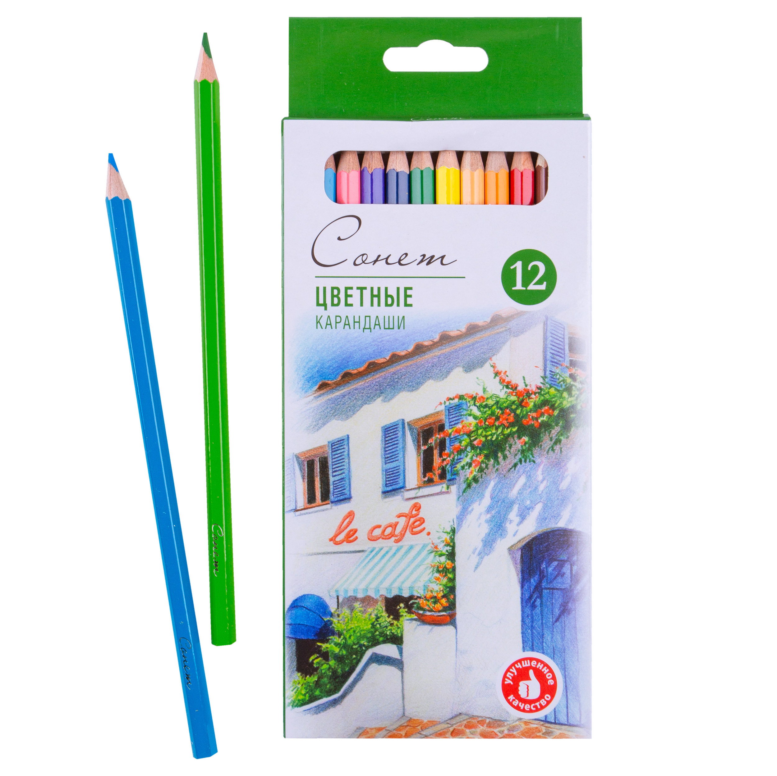 Набор профессиональных цветных карандашей "Сонет", 12 цветов, в картонной упаковке