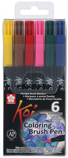 Набор маркеров акварельных "Koi", кисточка 6 спец-цв