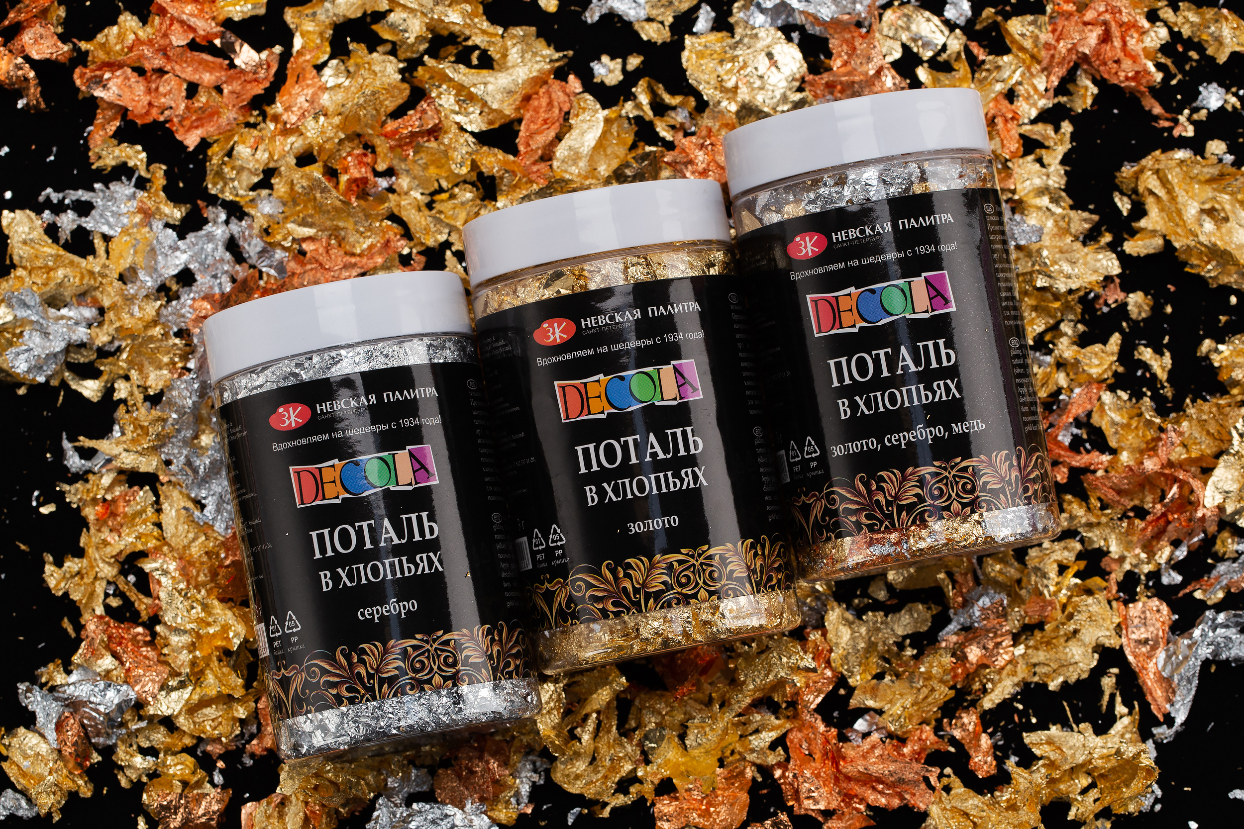 Поталь - это тончайший металлический лист, выкованный из слитка сплавов нескольких металлов. Визуально поталь мало отличается от металла, и работать с ней – сплошное удовольствие. Поталь очень красиво блестит и реагирует даже на тусклый свет.