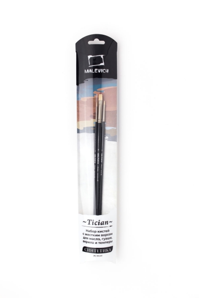 В наборе: круглая кисть № 2, плоские № 4, 8.