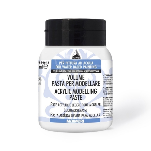 Очень густая белая паста, очень легкая. Средство позволяет работать в значительных толщинах и создавать экстремальные текстуры в работах.
