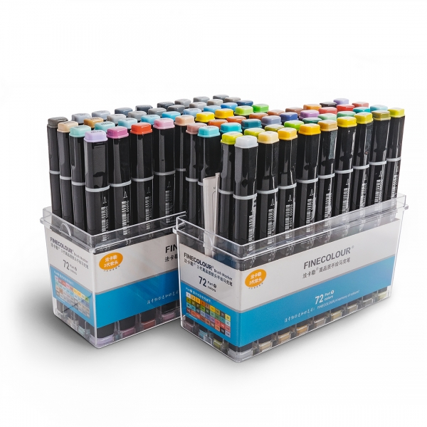 Набор маркеров FINECOLOUR BRUSH 72 цвета для скетчинга. Двухсторонние перезаправляемые спиртовые маркеры с японскими наконечниками высшего качества браш (гибкий, мягкий, иммитация кисти) и долото (широкий, твердый, толщина линии от 2 до 6 мл). Отличные показатели герметизации, благодаря чему наполнение внутри маркеров FINECOLOUR не сохнет. Колпачок открывается скручиванием, после использования должен быть плотно закрыт. Маркеры упакованы в 2 прочных прозрачных пластиковых кейса по 36 штук в каждом (кейсы промаркерованы часть 1 и часть 2). Номер цвета указан на крышке каждого маркера с обеих сторон. В состав набора входят: Y3, YG27, YG44, G52, BG71, BG96, B112, V119, R137, R140, R144, YR158, E168, E169, 191, Y225, B236, B237, B241, B242, E247, CG271, CG272, CG273, Y5, YG7, YG24, YG37, G50, BG107, BV194, YG229, E246, YG263, YG264, YG265, Y2, G51, YR179, BV197, R215, YR220, YG228, B234, B240, TG254, TG255, TG256, YG15, YG16, YG30, BG95, BG97, YR163, RV216, YG222, BG233, NG278, NG279, NG280, 0, YG21, B114, RV149, E164, RV207, BG232, B244, TG253, YG262, CG270, CG274.