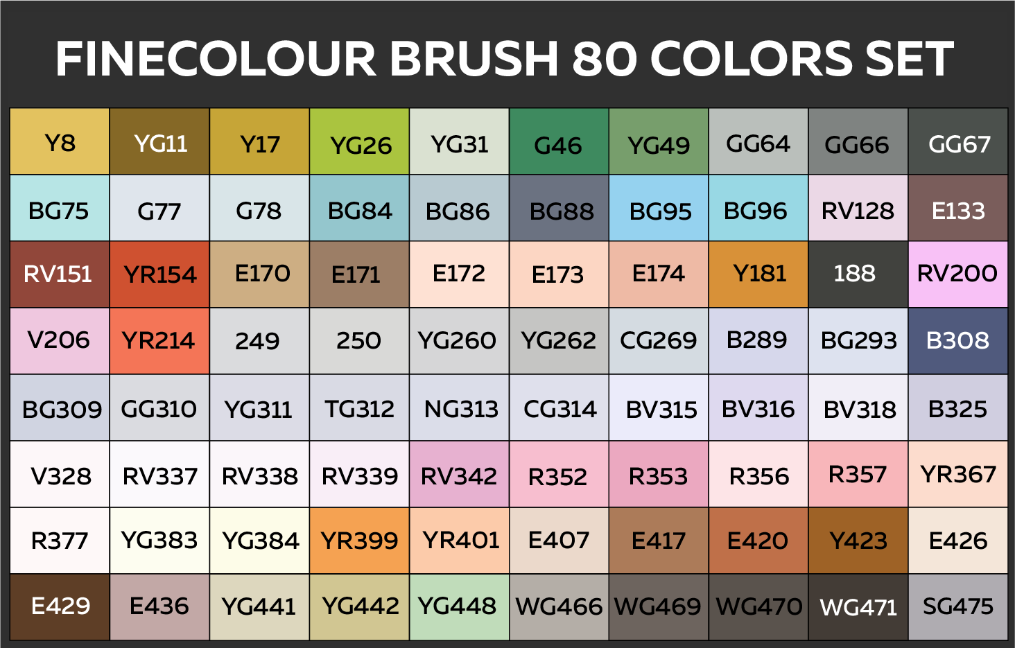 Набор маркеров FINECOLOUR BRUSH 80 цветов для скетчинга. Двухсторонние перезаправляемые спиртовые маркеры с японскими наконечниками высшего качества браш (гибкий, мягкий, иммитация кисти) и долото (широкий, твердый, толщина линии от 2 до 6 мл). Отличные показатели герметизации, благодаря чему наполнение внутри маркеров FINECOLOUR не сохнет. Колпачок открывается скручиванием, после использования должен быть плотно закрыт. Маркеры упакованы в удобную черную сумку на молнии. Номер цвета указан на крышке каждого маркера с обеих сторон.