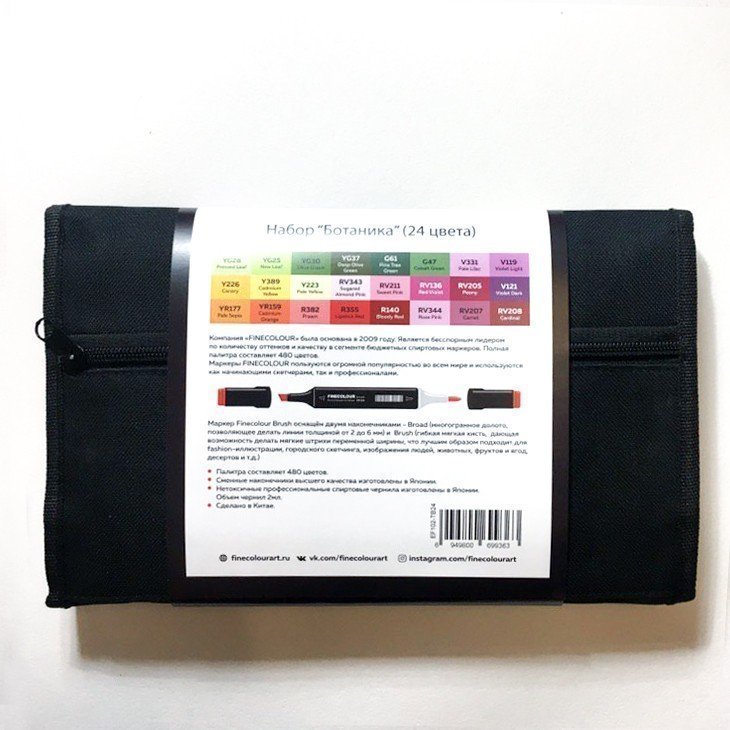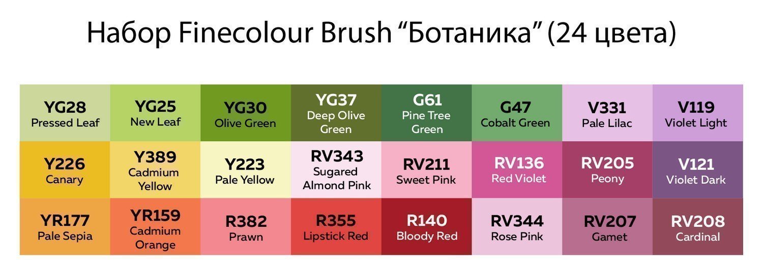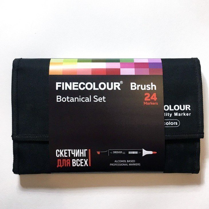Набор спиртовых маркеров "Finecolour Brush" 24 цвета в пенале Ботаника