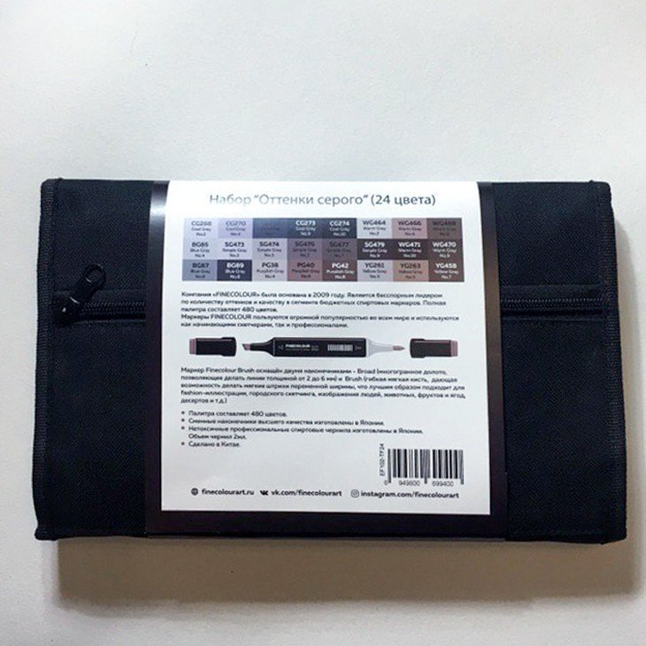 Тематический набор маркеров FINECOLOUR BRUSH 24 цвета для скетчинга. Двухсторонние перезаправляемые спиртовые маркеры с японскими наконечниками высшего качества браш (гибкий, мягкий, иммитация кисти) и долото (широкий, твердый, толщина линии от 2 до 6 мл). Отличные показатели герметизации, благодаря чему наполнение внутри маркеров FINECOLOUR не сохнет. Колпачок открывается скручиванием, после использования должен быть плотно закрыт. Номер цвета указан на крышке каждого маркера с обеих сторон. Маркеры упакованы в удобный тканевый кейс-скрутку черного цвета. В состав набора входят: CG268, CG270, CG272, CG273, CG274, WG264, WG466, WG468, BG85, SG473, SG474, SG476, SG477, SG479, WG471, WG470, BG87, BG89, PG38, PG40, PG42, YG261, YG263, YG458.