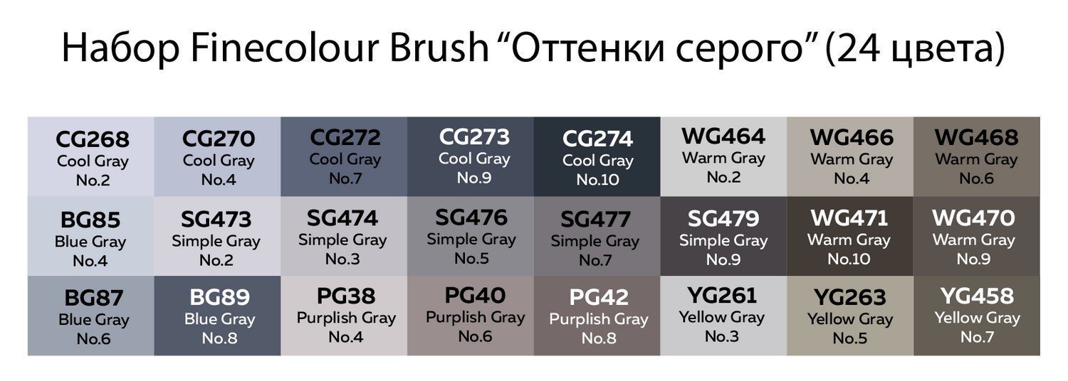 Набор спиртовых маркеров "Finecolour Brush" 24 цвета в пенале Оттенки серого sela