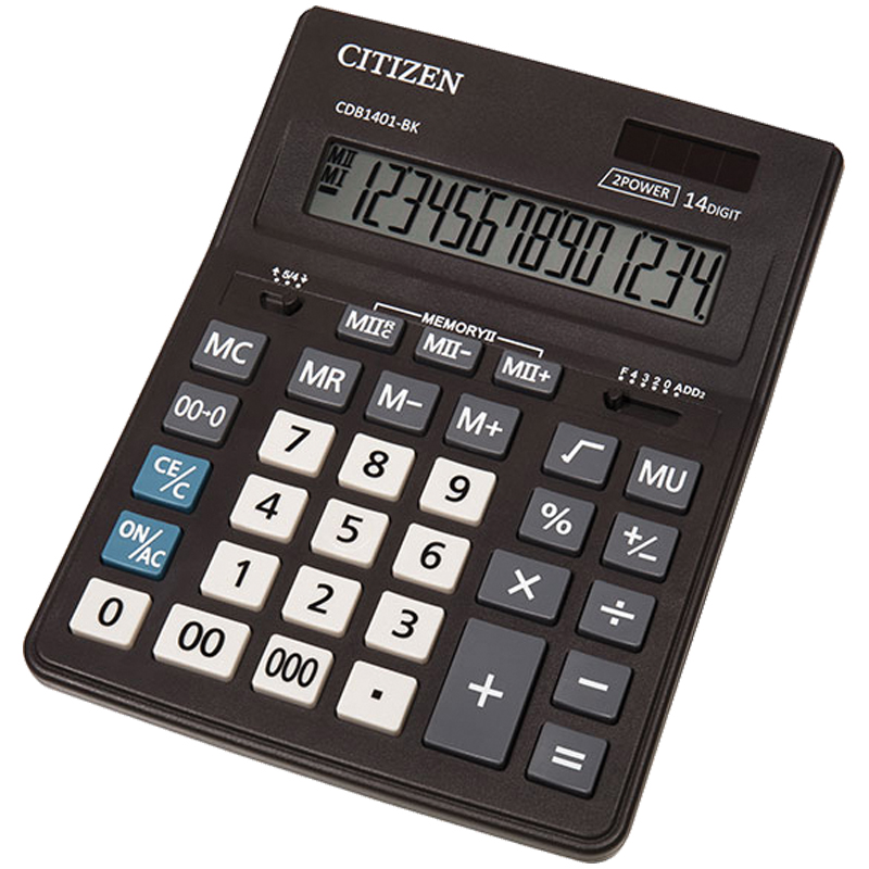 Калькулятор настольный Citizen Business Line CDB, 14 разр., двойное питание, 157*200*35мм, черный