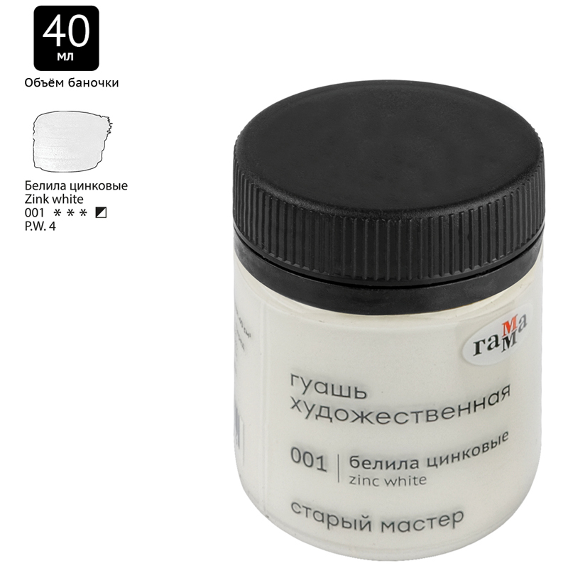 Гуашь художественная Гамма "Старый Мастер", белила цинковые, 40мл sela25