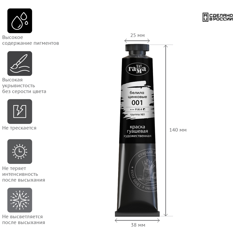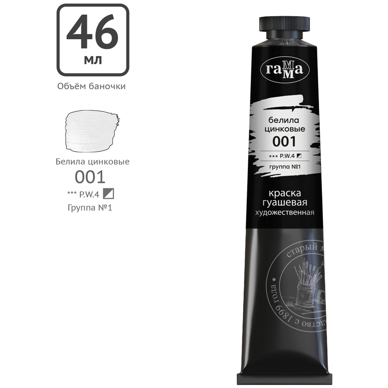 Гуашь художественная Гамма "Старый Мастер", белила цинковые, 46мл, туба