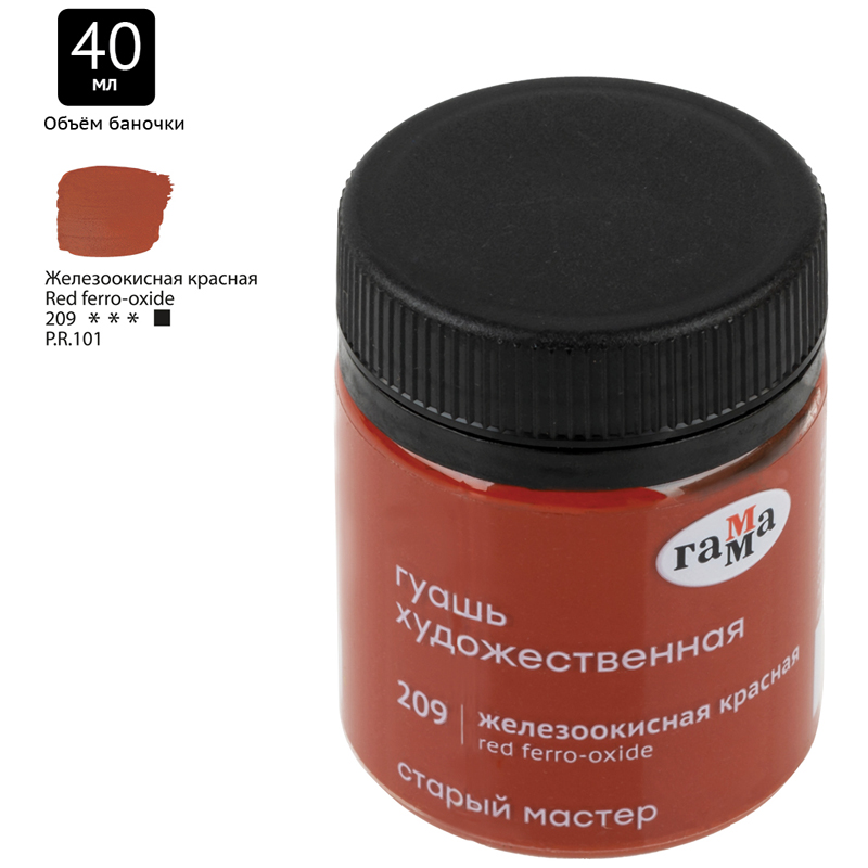 Гуашь художественная Гамма "Старый Мастер", железоокисная красная, 40мл sela25