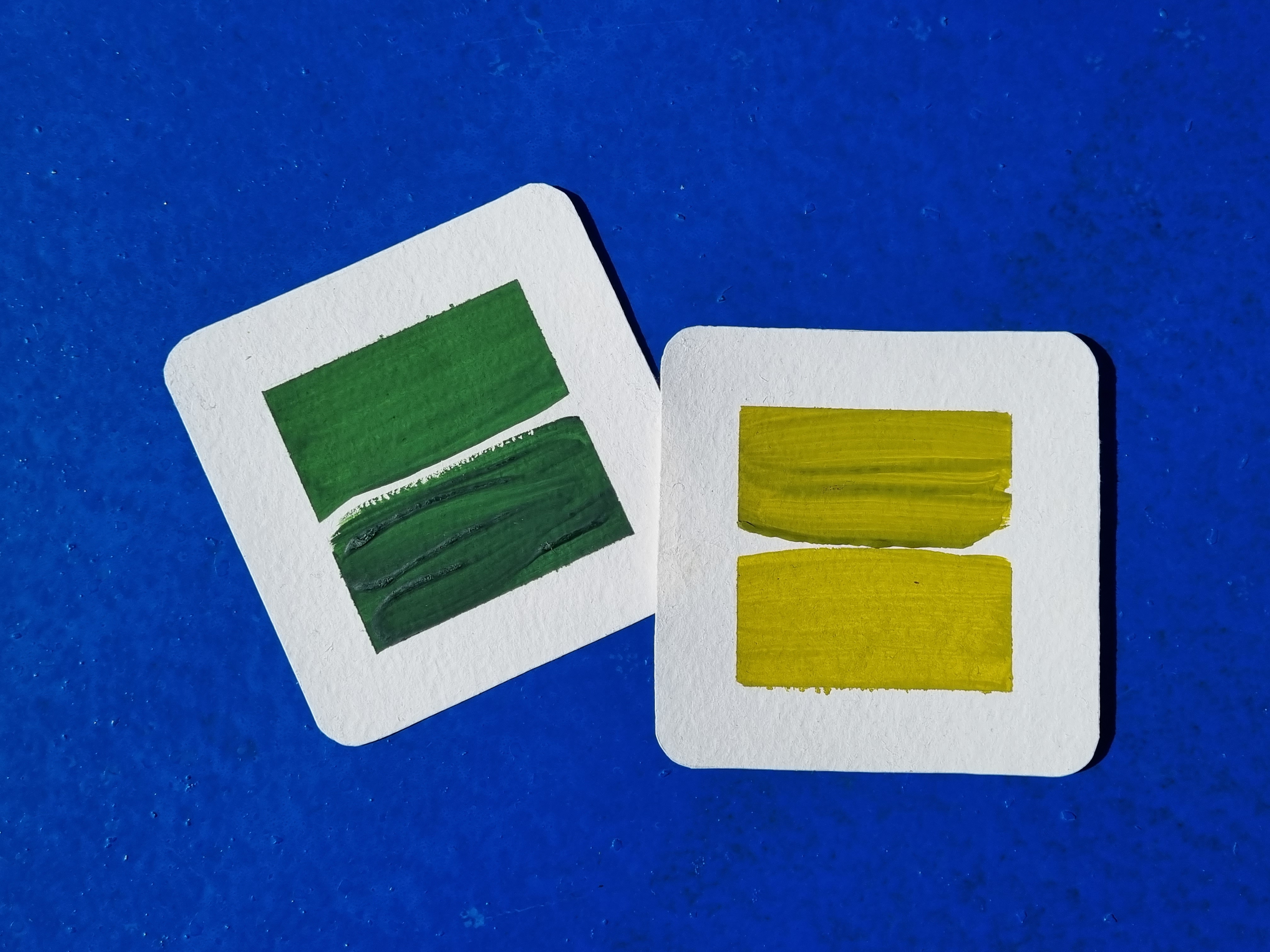 При изготовлении красок используются традиционные художественные пигменты, в том числе пигменты кадмиево-кобальтовой группы.