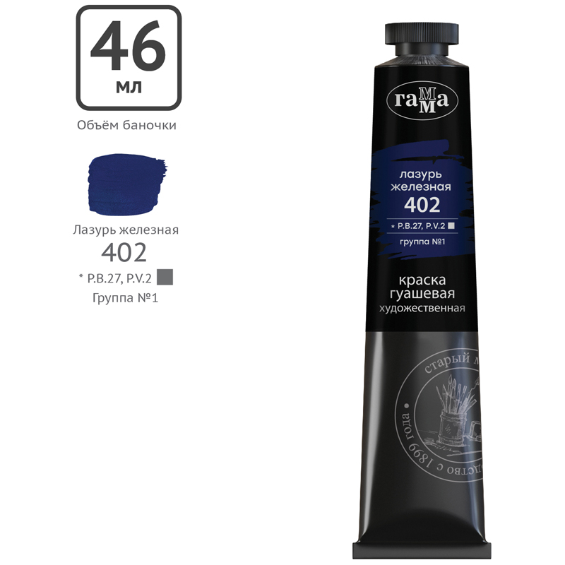 Гуашь художественная Гамма "Старый Мастер", лазурь железная, 46мл, туба sela25