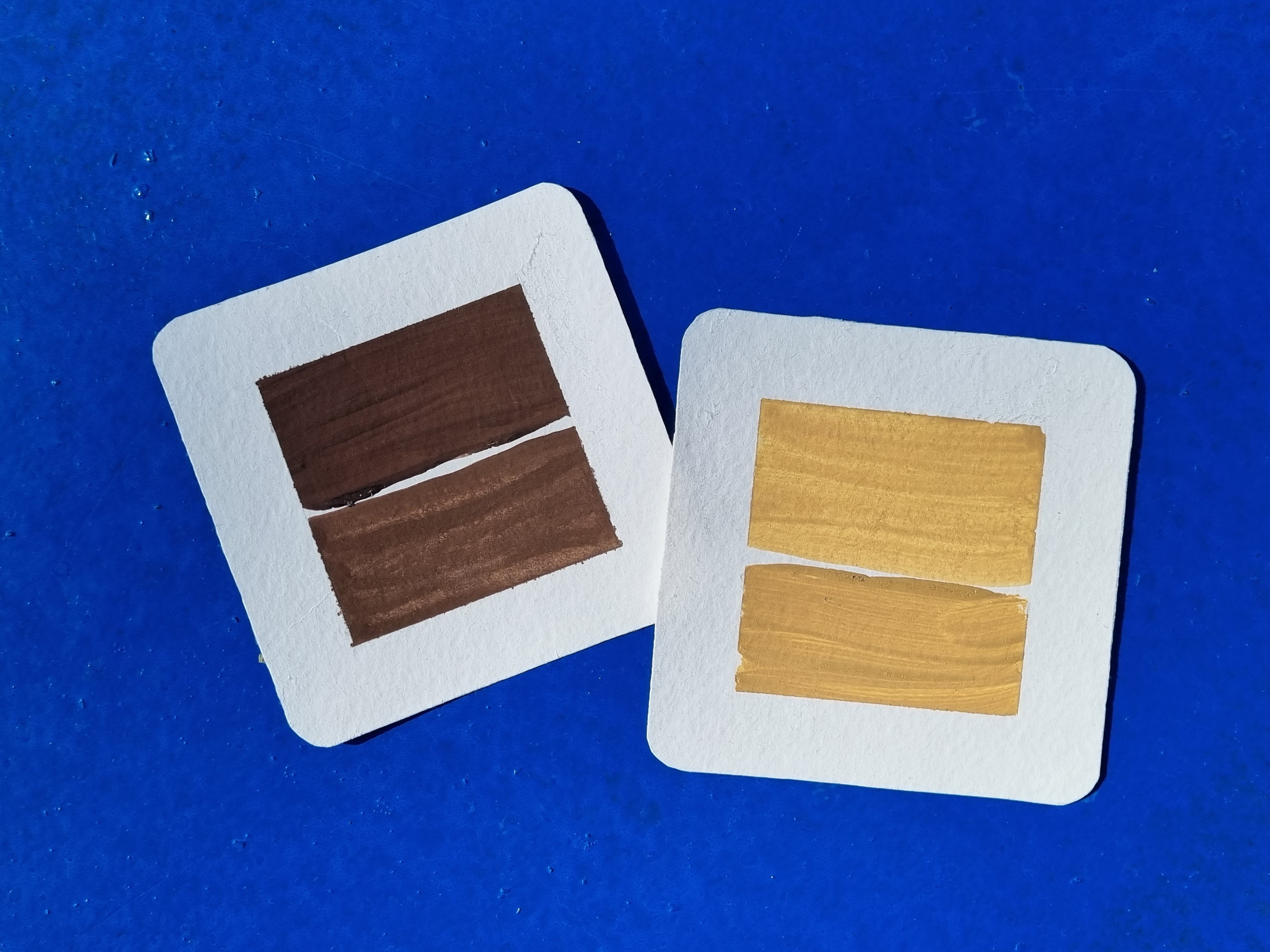 При изготовлении красок используются традиционные художественные пигменты, в том числе пигменты кадмиево-кобальтовой группы.