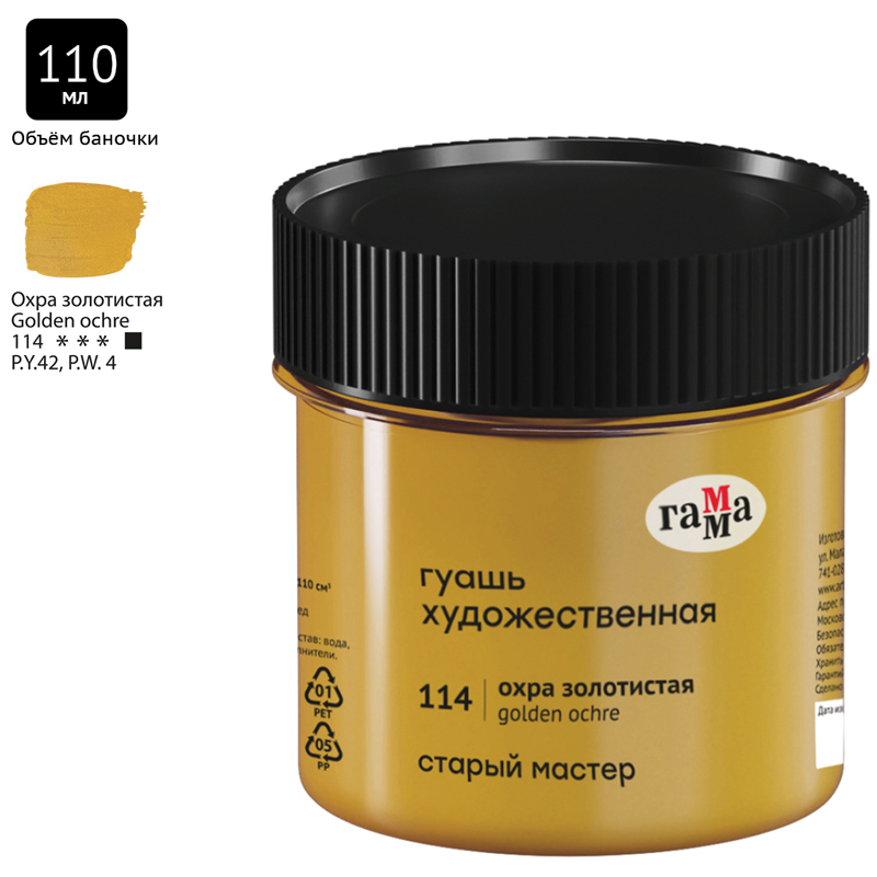 Гуашь художественная Гамма "Старый Мастер", охра золотистая, 110мл sela25