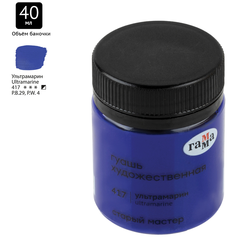 Гуашь художественная Гамма "Старый Мастер", ультрамарин, 40мл sela25