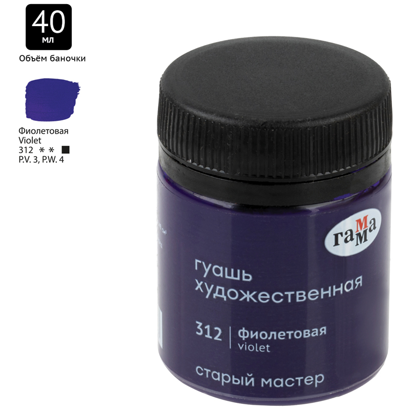 Гуашь художественная Гамма "Старый Мастер", фиолетовая, 40мл sela25