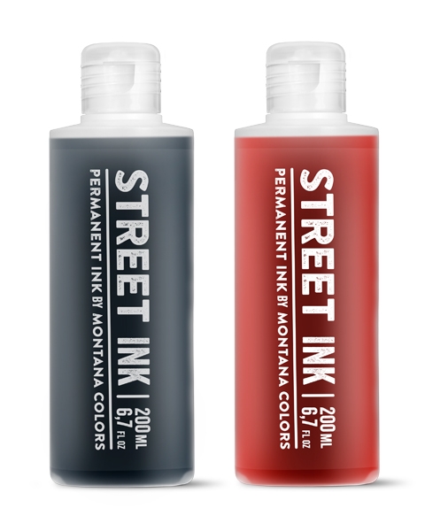 Чернила перманентные для заправки маркеров и сквизеров MTN Street. Доступны в 2х цветах: красные и черные. Укрывистые, ультра-устойчивые к погодным условиям и УФ лучам.