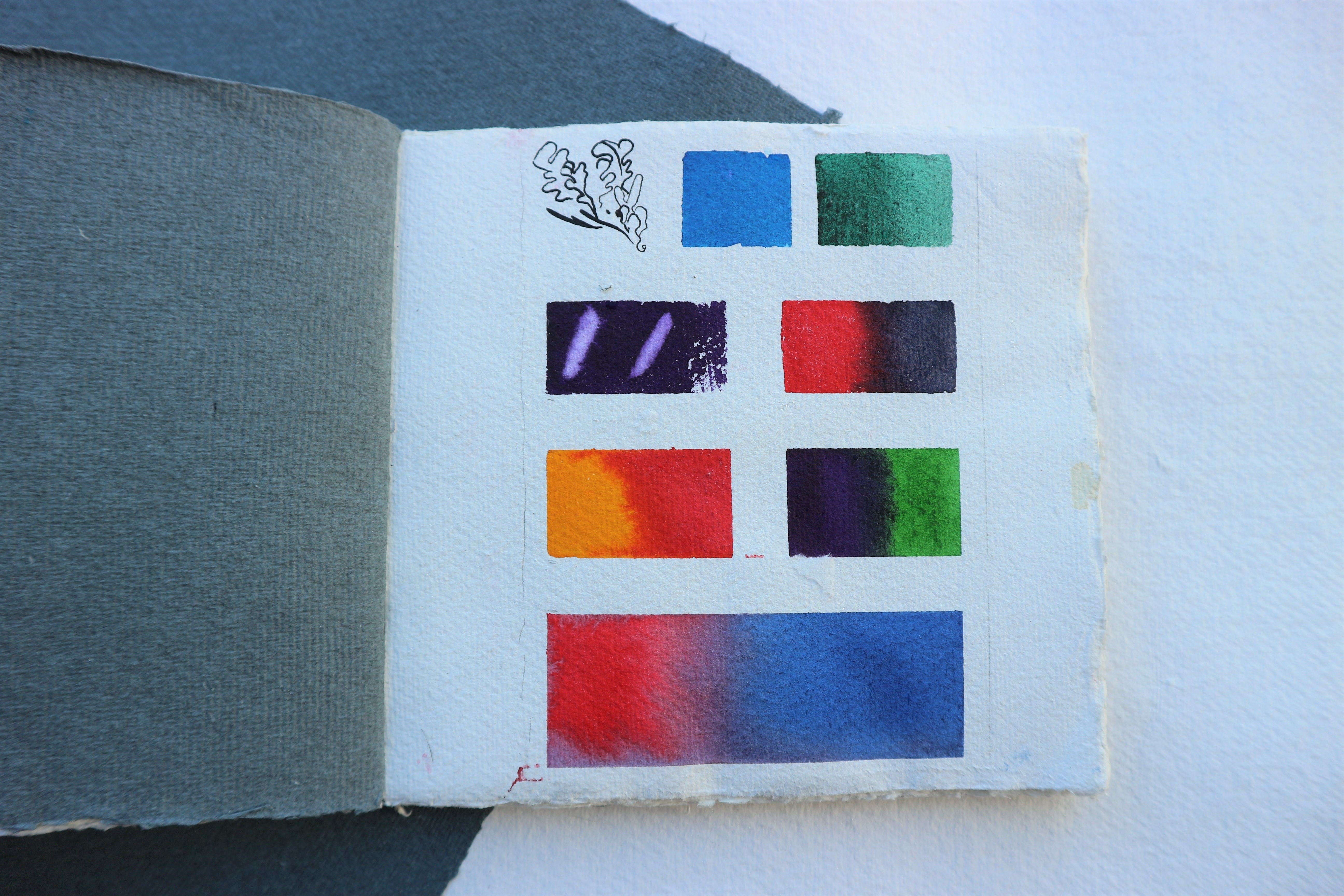 При смешивании выдает короткий градиент с приятным затуханием в соседствующем пигменте.Даже при нанесении краски с небольшим количеством воды эта бумага имеет тенденцию выгибается в сторону пользователя. После высыхания на неплотной заливке видны микроскопические белые точки.