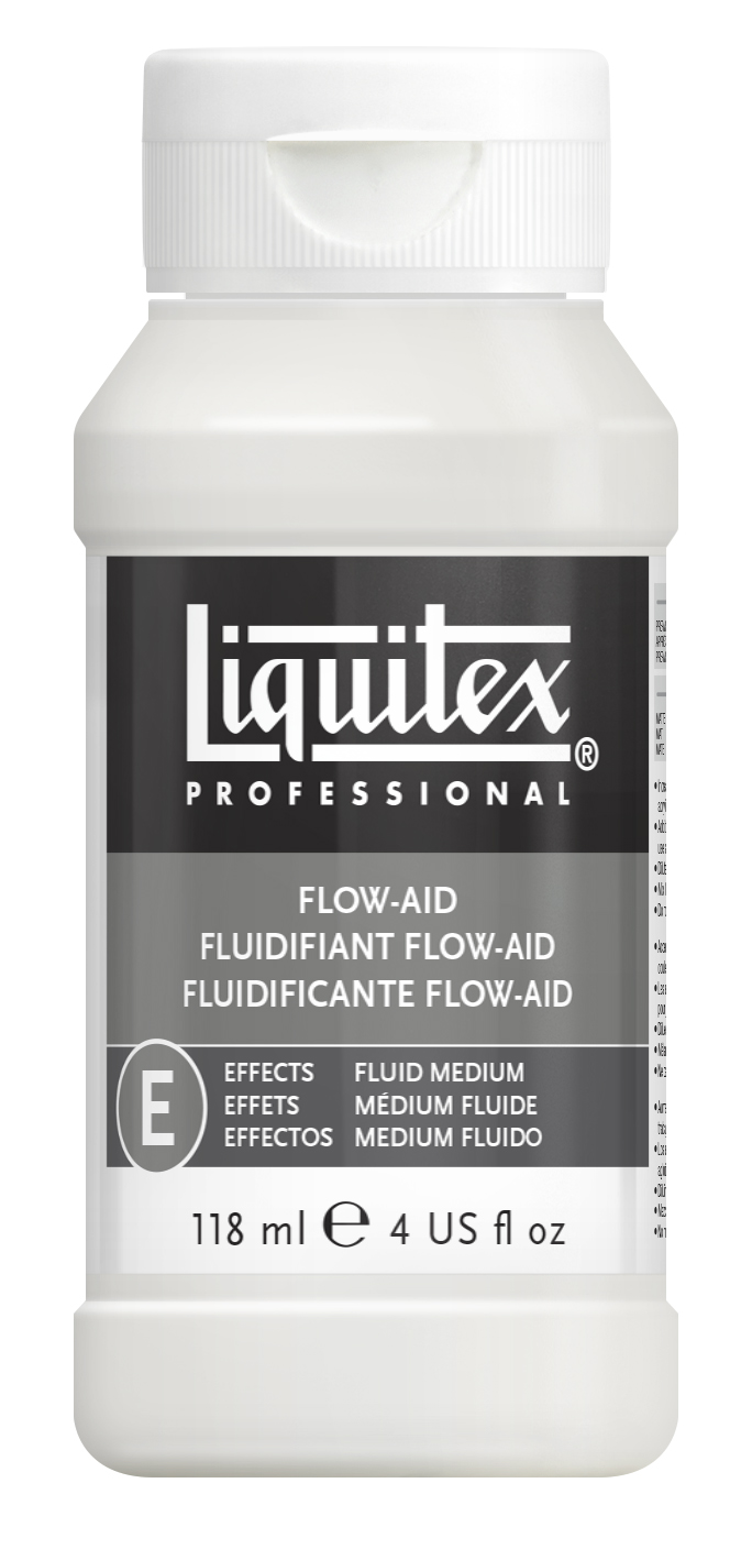 Сначала разбавьте концентрированный "Flow Aid" водой: 1 часть медиума на 20 частей дистиллированной воды (если хотите получить более концентрированный эффект используйте 1 часть на 10 частей воды). Добавьте до 25% разбавленного "Flow Aid" к нужной краске и медленно перемешайте, чтобы избежать пенообразования. Если смесь пенится, оставьте её, пока пена не исчезнет. Не используйте медиум в неразбавленном виде, так как это приводит к плохой адгезии, образованию трещин, липкости и чувствительности к воде.