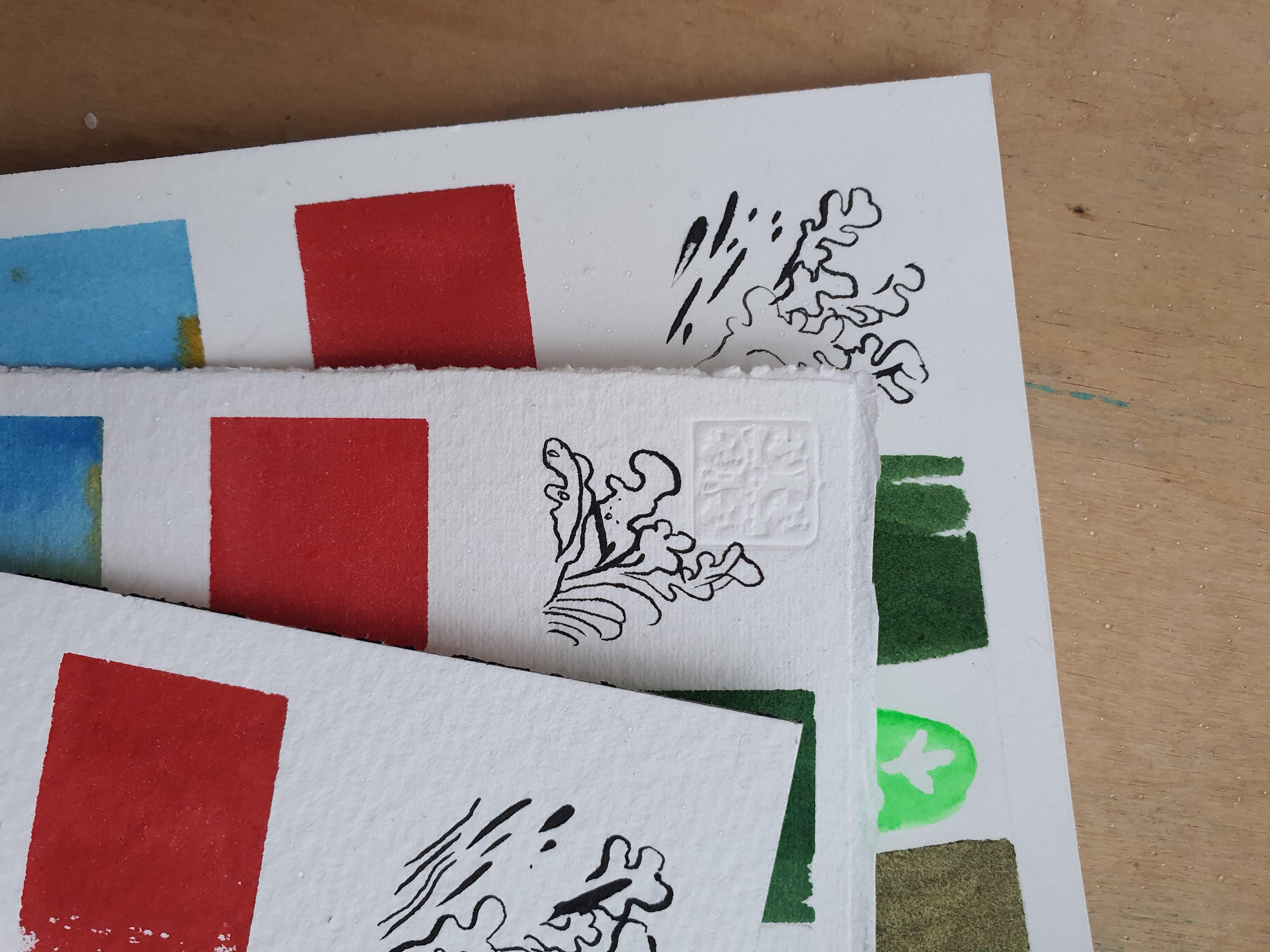 Сложилось общее впечатление, что эта бумага создана для экстремальных влажных техник, потому что она невероятно стабильна во влажном состоянии, быстро и много пьёт. Быстро стабилизируется и выдаёт очень благородный результат даже при неделикатном использовании. Бумага прекрасно показала себя во всех тестах. Особенно понравилось полное отсутствие деформации на обратной стороне листа - если положить использованные листы и свежие рядом- то не заметно разницы.