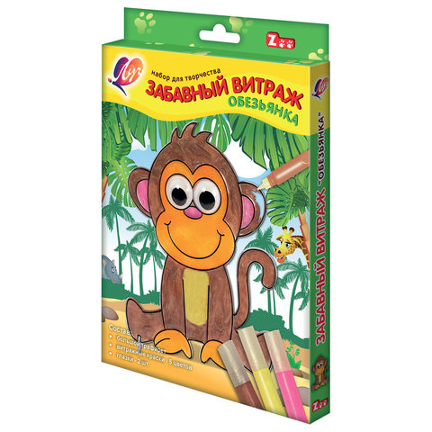 Набор для творчества "Забавный витраж "Обезьянка": краски по стеклу 5 цветов, трафарет, глазки