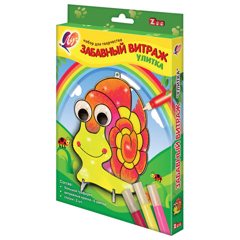 Набор для творчества "Забавный витраж "Улитка": краски по стеклу 5 цветов, трафарет, глазки