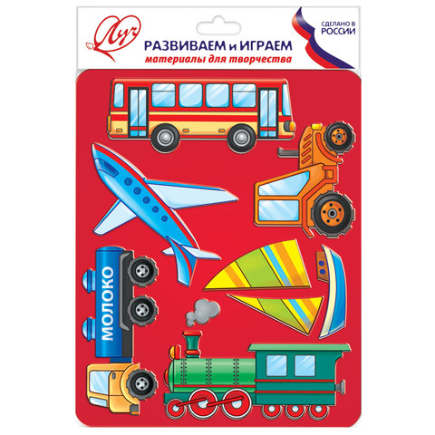 С помощью этого трафарета ребенок выучит названия новых для себя видов транспорта, научится их рисовать, заштриховывать и раскрашивать. Такой трафарет пригодится для занятий творчеством с юными художниками от трех лет.