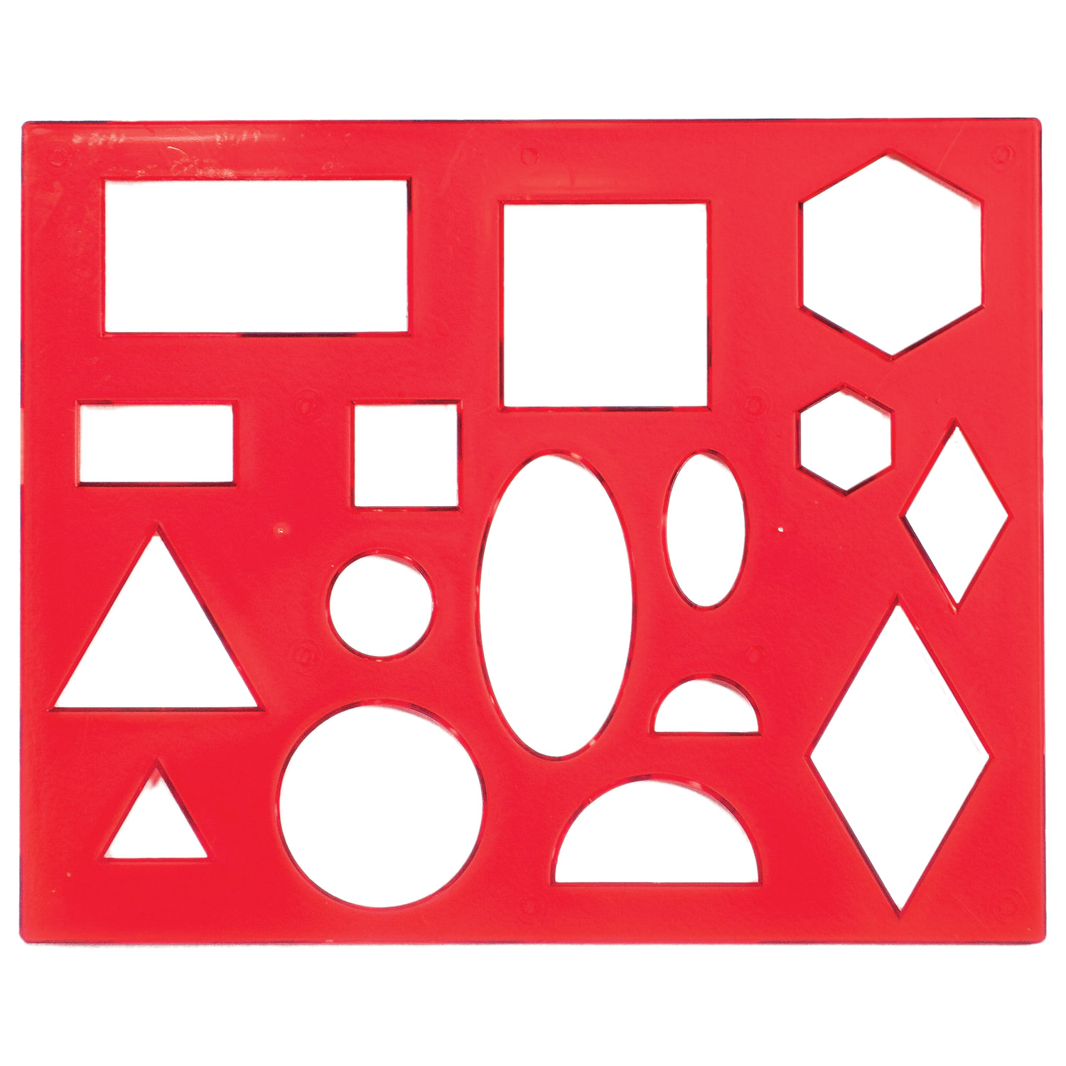 Трафарет из прочного пластика предназначен для черчения различных геометрических фигур. На край нанесена шкала линейки. Трафарет пригодится на занятиях дома, в детском саду, в школе.