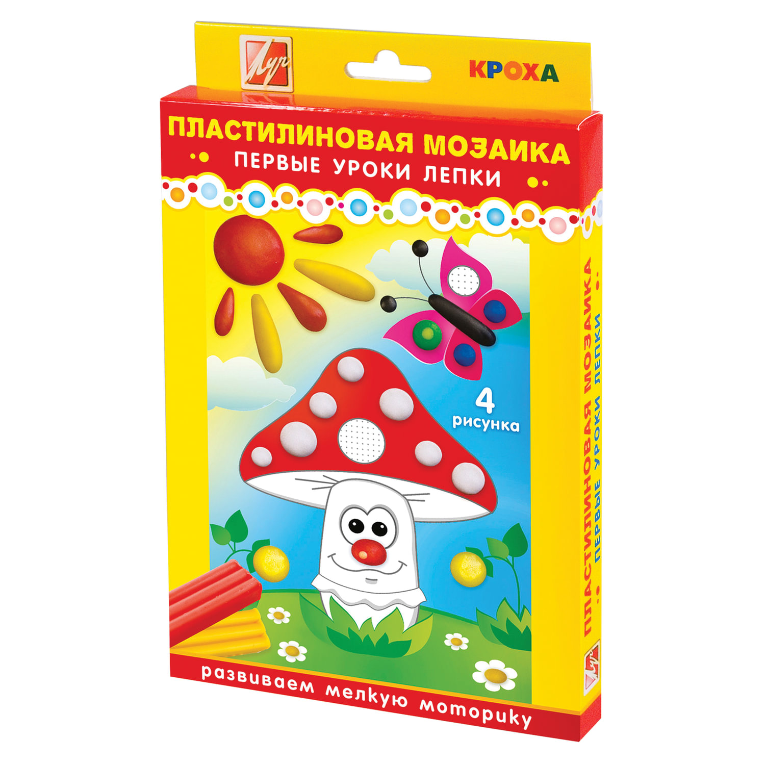 Набор для творчества "Пластилиновая мозаика №2": пластилин мягкий 6 цветов, стек, 4 рисунка