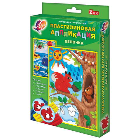 Набор для творчества "Пластилиновая аппликация "Белочка": пластилин 6 цветов, стек, 2 рисунка