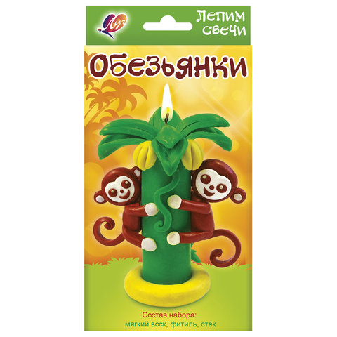 Набор для изготовления свечей "Обезьянки": восковые пластины 4 цв, фитиль, стек