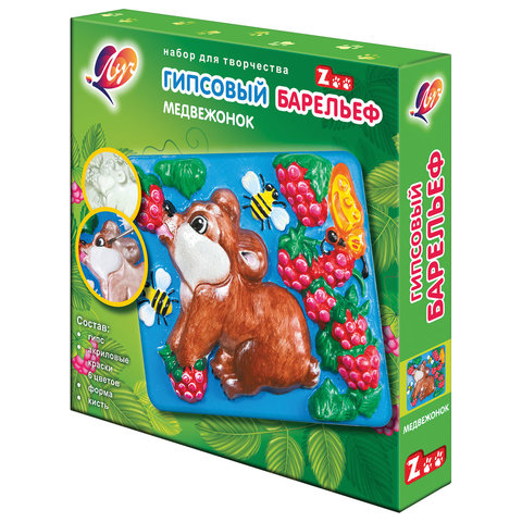 Набор для изготовления барельефа "Медвежонок" (гипс, Набор акриловых красок 6 цв, форма, кисть)