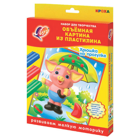 Набор "Хрюша на прогулке" предназначен для создания объемных картин из пластилина с использованием готовой пластиковой заготовки с сюжетом.