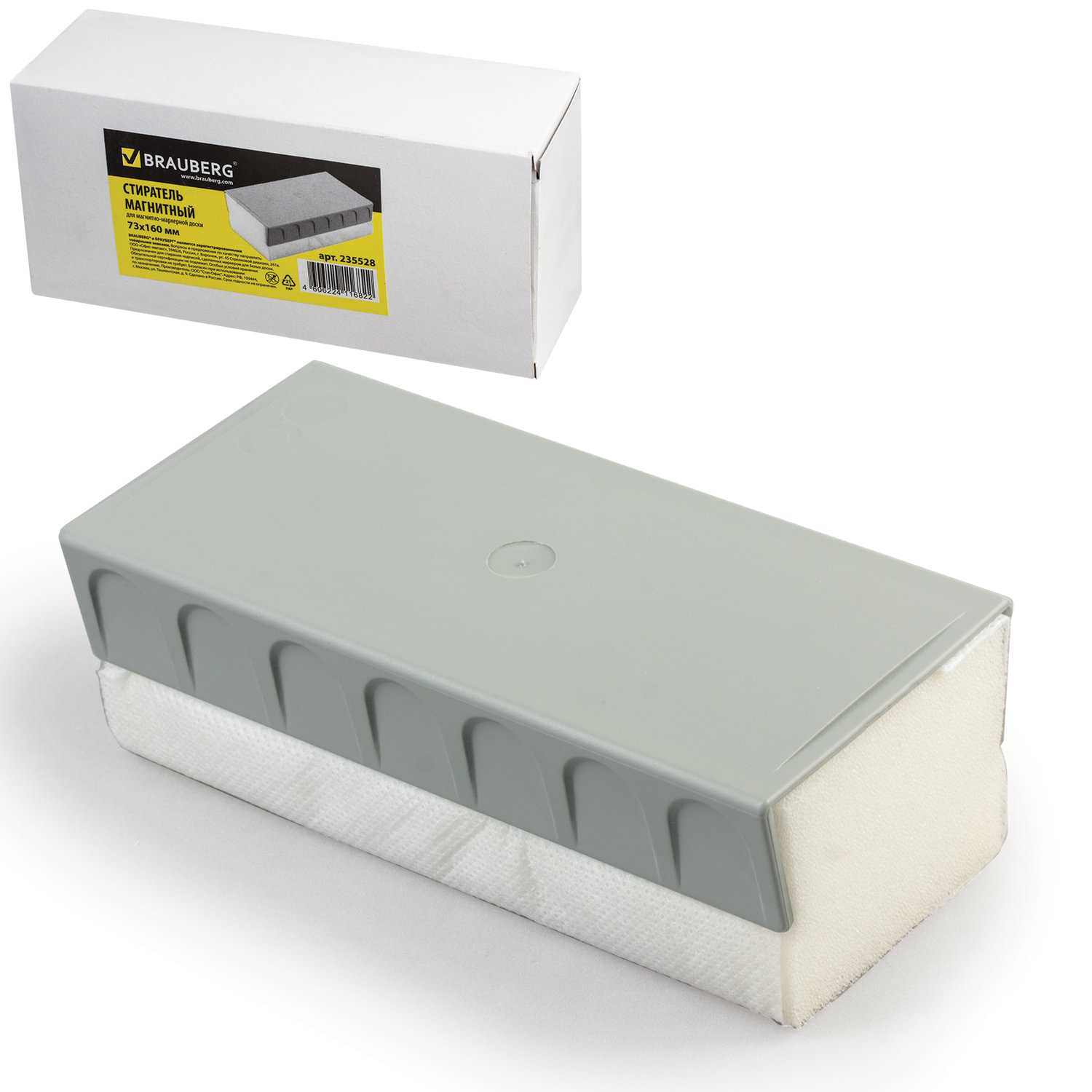 Предназначен для стирания надписей, сделанных маркером для белых досок. Оснащен магнитной пластиной для крепления к доске.