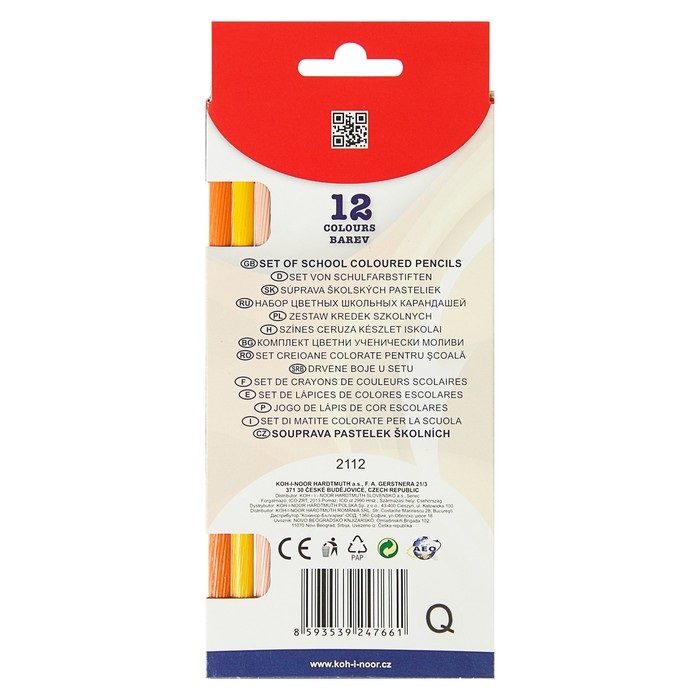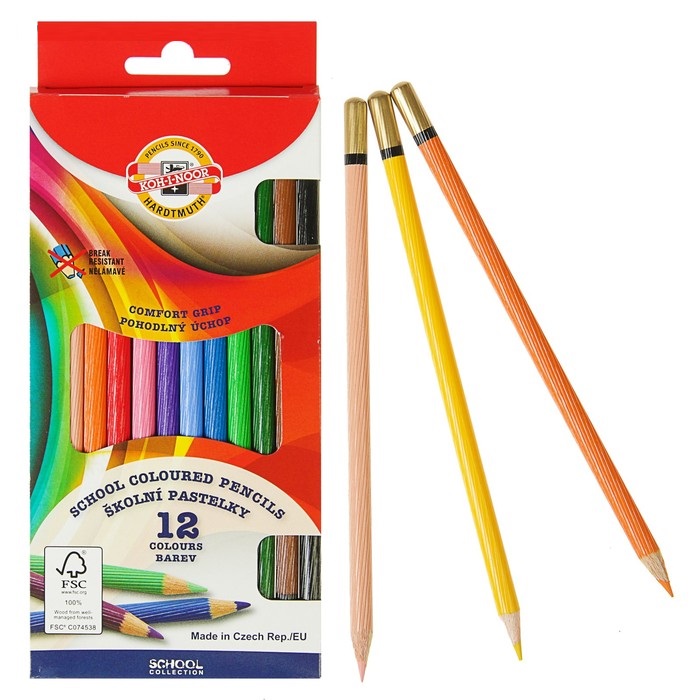 Набор из 12 рифлёных цветных заточенных карандашей серии "2112" от чешской компании "Koh-I-Noor".