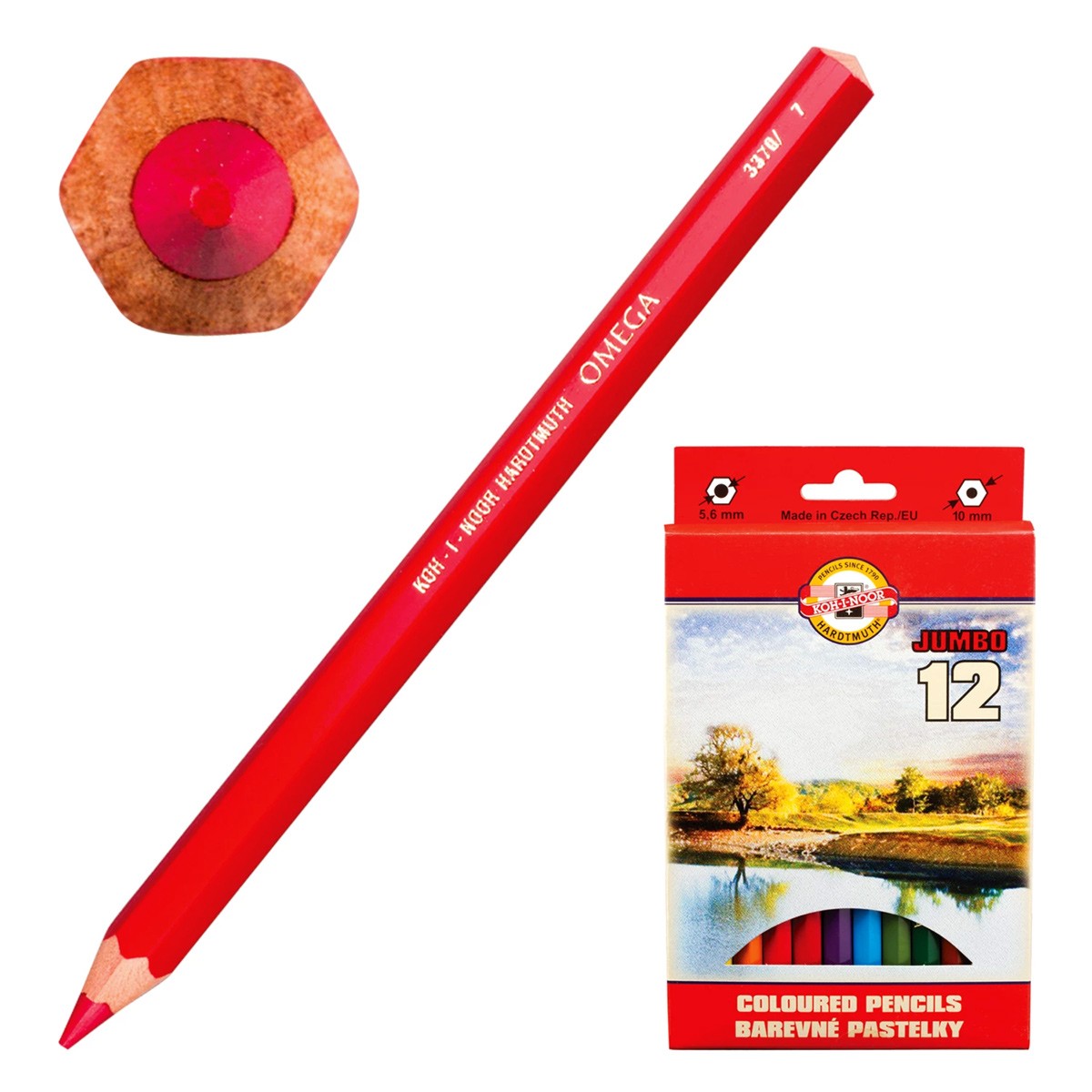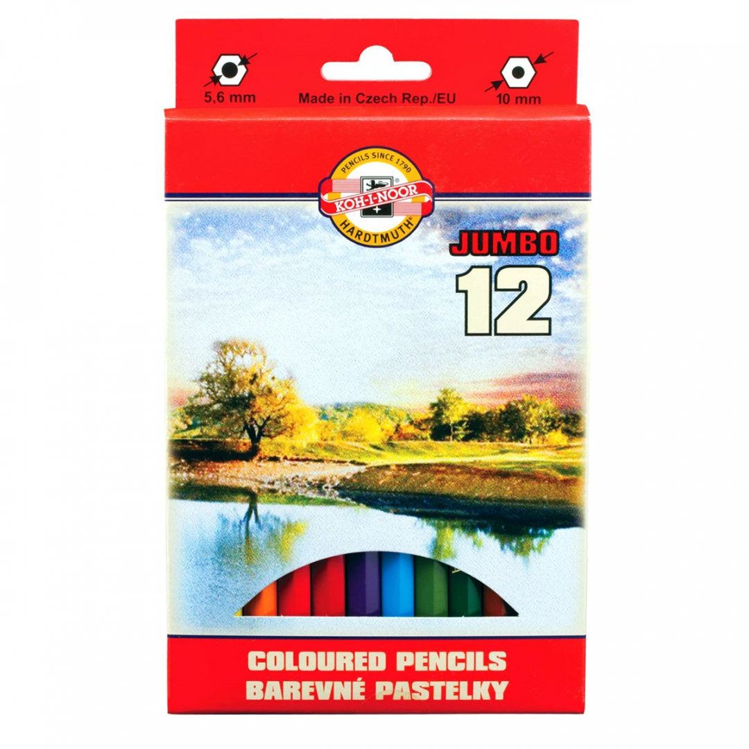 Набор из 12 утолщенных цветных заточенных карандашей серии "Omega" от чешской компании "Koh-I-Noor".