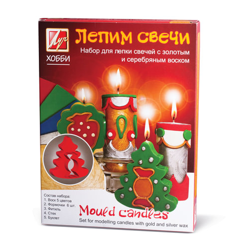 Набор для изготовления свечей "Лепим свечи": восковые пластины золотые/серебряные, 5 шт, фитиль