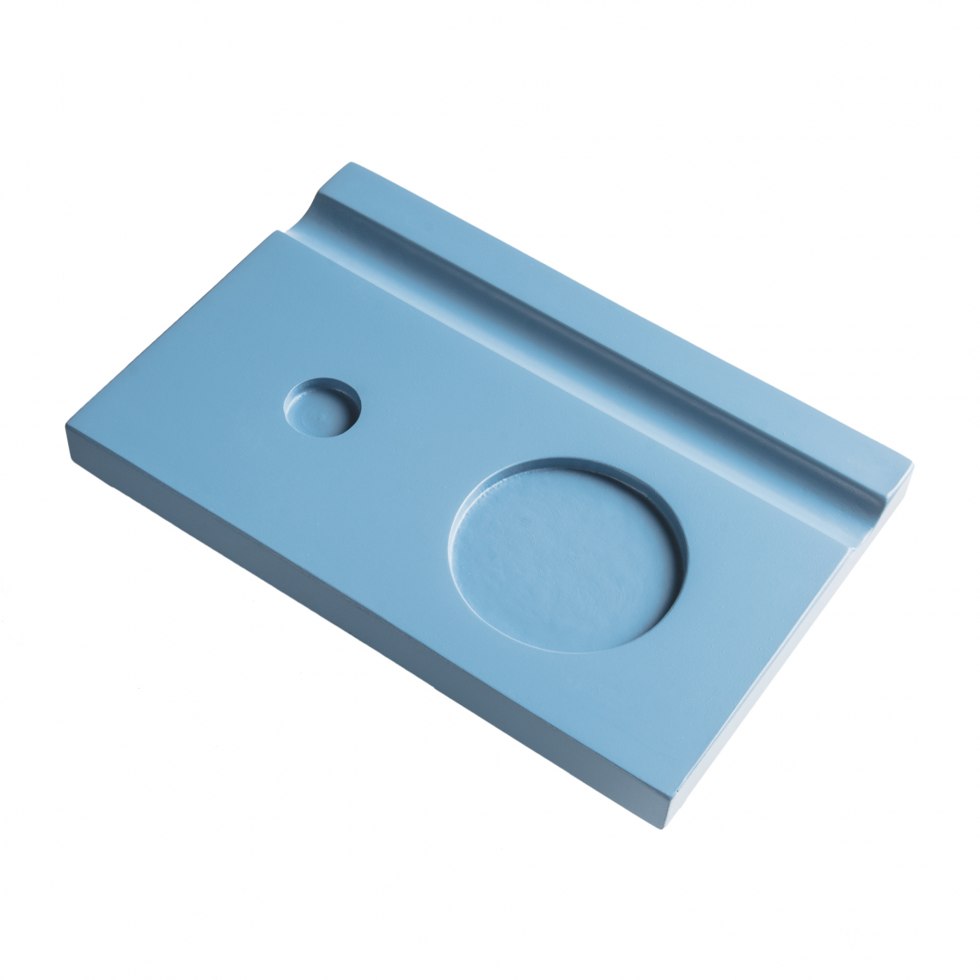 Подставка под чернильницы-непроливайки нужна в первую очередь для организации рабочего места для читописания. Приучает ребёнка к чистоте и порядку на рабочем столе защищает поверхность стола от загрязнения чернилами. Подставки имеют два посадочных углубления для самой непроливайки и для крышечки под неё. Так же имеется канавка-углубление под перо. Подставка покрыта алкидной эмалью. Эмаль в течении определенного времени не впитывает в себя чернила, что позволяет спокойно смыть их следы.