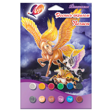 Роспись картины "Пегасы", Набор (заготовка, Набор акриловых красок 12 цв, кисть