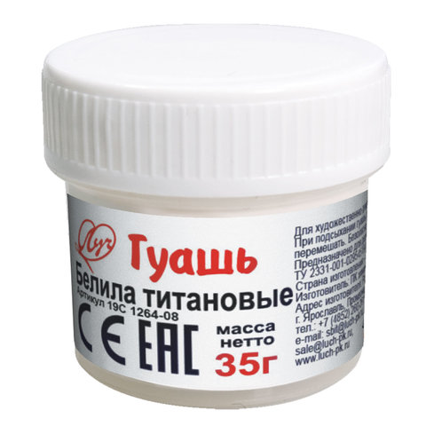Гуашь обладает превосходной кроющей способностью, насыщенностью и чистотой цвета, равномерно наносится. После высыхания краски поверхность становится матово-бархатистой. Упакована в пластиковую баночку с винтовой крышкой.