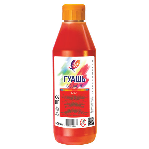 Гуашь художественная 1 шт. "Классика", 500 мл, алая, пластиковая бутылка, дозатор
