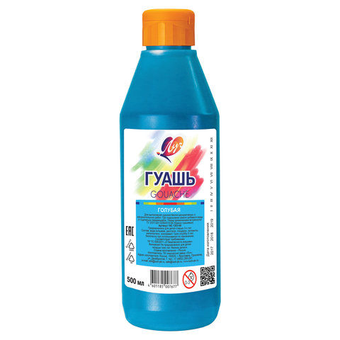 Гуашь художественная 1 шт. "Классика", 500 мл, голубая, пластиковая бутылка, дозатор
