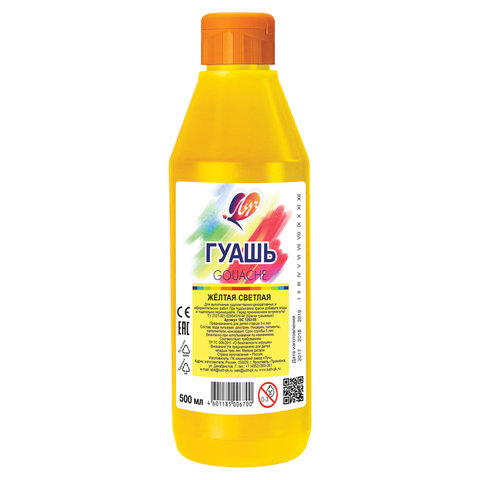 Гуашь художественная 1 шт. "Классика", 500 мл, желтая светлая, пластиковая бутылка, дозатор